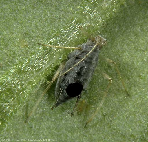 | Aspect des momies | tannée, grise ou marron, oblongue (figure 4). L'adulte parasitoïde émerge à travers un trou rond à l'arrière de la momie (figure 5). |