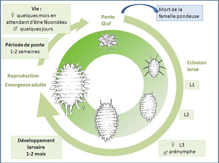 Ci-dessus le cycle de développement de Planococcus citri.