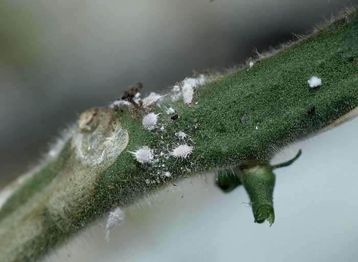 On la retrouve surtout sur les tiges, soit sur la partie horizontale dans le cas de cultures en palissage, ou en bas de la plante.