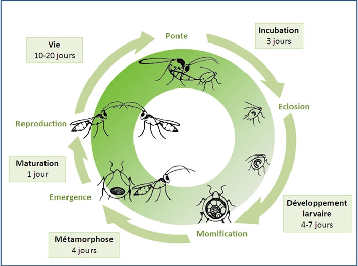 Ci dessus le cycle de développement d'Aphidius matricariae.