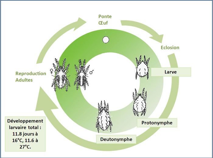 Ci-dessus le cycle de développement de Macrocheles robustulus.
