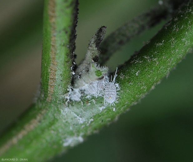 Du miellat et de la fumagine* recouvrent souvent la surface des organes aériens des plantes (figures 8 et 11). La fumagine, en réduisant la photosynthèse et la respiration, est à l'origine de jaunissements et d'altérations foliaires. Elle souille aussi les fruits ou altère leur coloration (figure 3), les rendant non commercialisables.