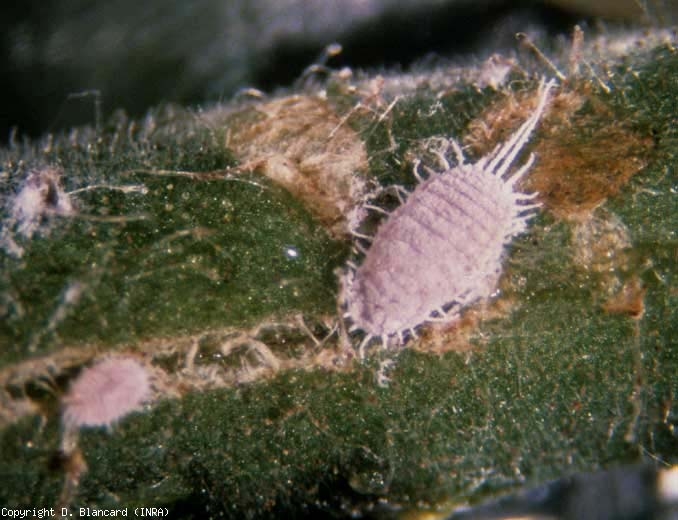 - Symptômes : nombreuses piqûres et succions alimentaires, déformations foliaires, taches chlorotiques, croissance réduite des plantes