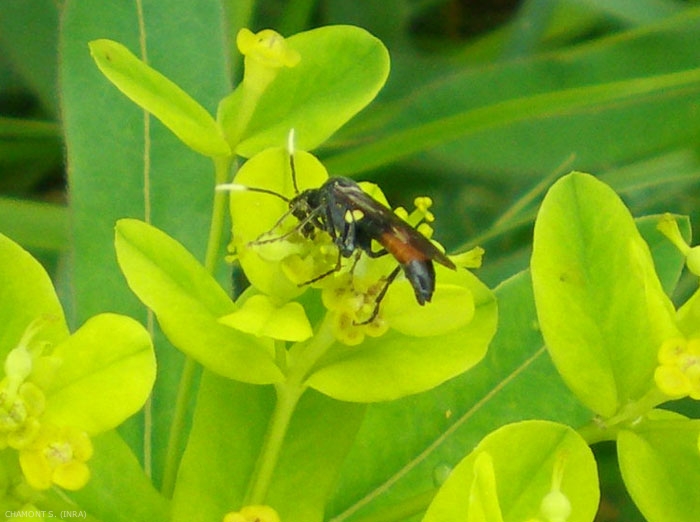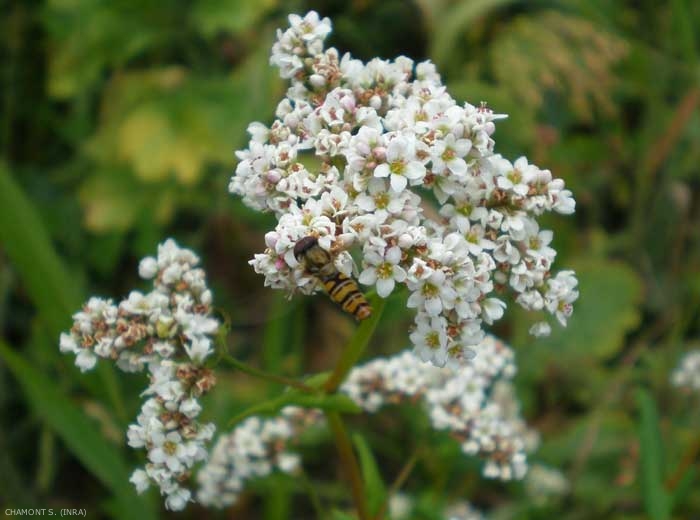 D'autres plantes pourraient être citées. Le sarrasin, Fagopyrum esculentum (Polygonaceae) autrefois cultivé comme céréale en sols pauvres et utilisé actuellement comme engrais vert pour sa rapidité de végétation, se révèle être une plante auxiliaire intéressante pour la richesse en nectar de ses fleurs (figure). Les euphorbiacées dont les fleurs sont pourvues de glandes nectarifères nourrissent des hyménoptères pollinisateurs et parasitoïdes.