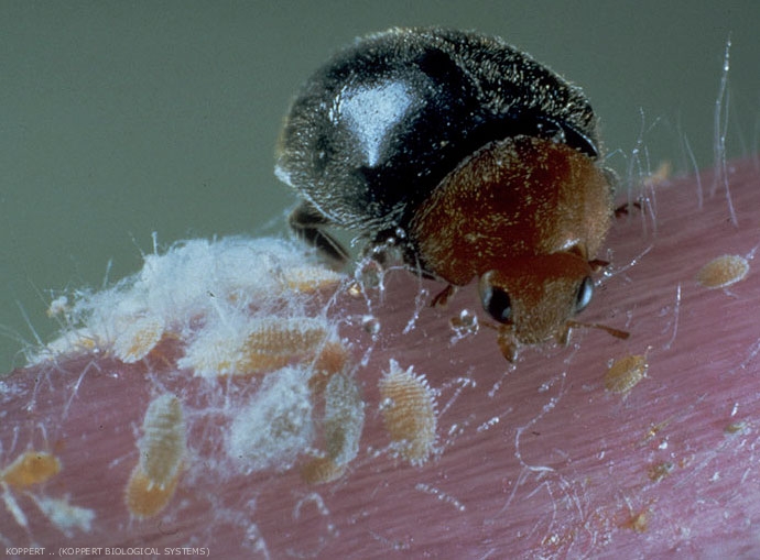| Efficacité | Au cours de son développement, une larve de C. montrouzieri est capable d'absorber, à 21 °C, plus de 250 larves de cochenilles de deuxième et troisième stades. Les larves de fin de troisième et de quatrième stade sont les plus voraces, consommant jusqu'à 30 cochenilles par jour. Les adultes et les larves sont plus actifs par temps ensoleillé. |