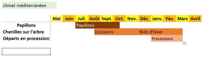 De même, l'éclosion des premières chenilles va s'échelonner entre mi-août et fin octobre. Dans ces régions, les processions sont précoces et peuvent se terminer début mars (figure 2).