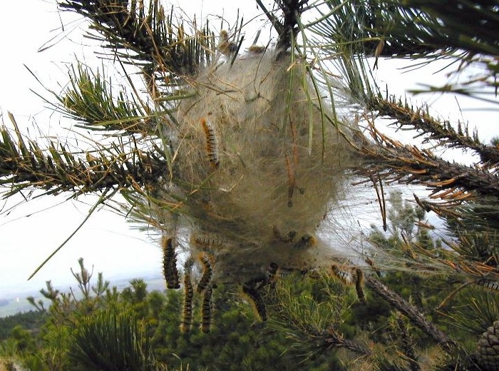 La lutte microbiologique consiste à appliquer sur le feuillage des arbres infestés par la processionnaire du pin (Thaumetopoea pityocampa) une substance contenant la bactérie Bacillus thuringiensis kurstaki (Btk) (figure 1). Cette bactérie, une fois ingérée par les chenilles, attaque la paroi de l’intestin moyen. Dans cette phase ultime, la chenille cesse de s’alimenter et meurt rapidement de septicémie (1 à 5 jours) (figure 2).