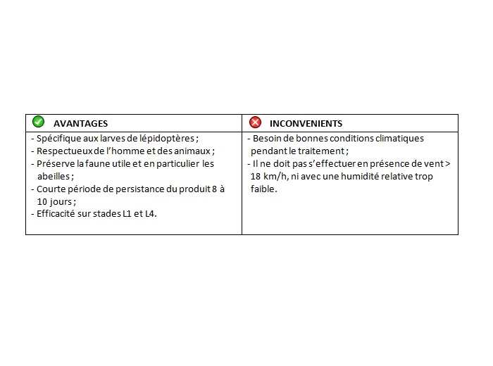 Les avantages et inconvénients de cette méthode de lutte sont présentés dans la figure 5.