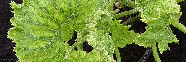 Notons que le ToLCNDV a été également isolé en Espagne à partir d’échantillons de concombre, de courge et de melon présentant les symptômes suivants : mosaïque jaune intense, enroulement et déformation des feuilles, et rabougrissement et perte de vigueur très prononcée des plantes.