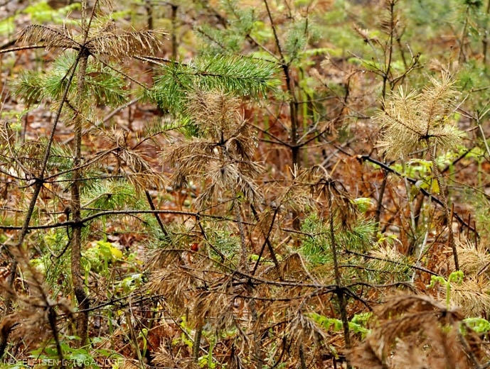 - La consommation des racines provoquent la mortalité des plants et la disparition des semis de toutes les essences. Une population importante durant plusieurs cycles peut même avoir une incidence sur des tiges assez grandes au stade fourré, gaulis, etc.