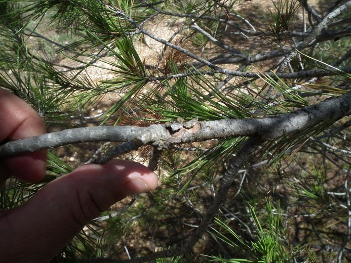 - La bactériose du pin d'Alep due à Corynebacterium halepensis est caractérisée par des excroissances globuleuses implantées latéralement sur des rameaux, d'abord très petites, qui grossissent peu à peu et bloquent la circulation de la sève, provoquant le dessèchement des pousses terminales.