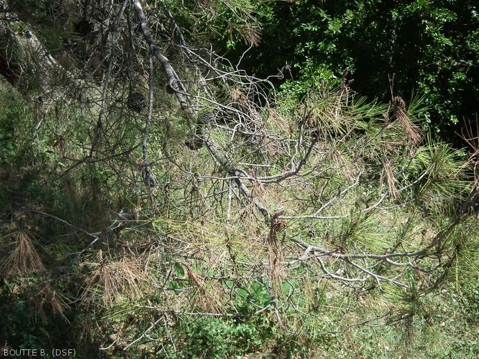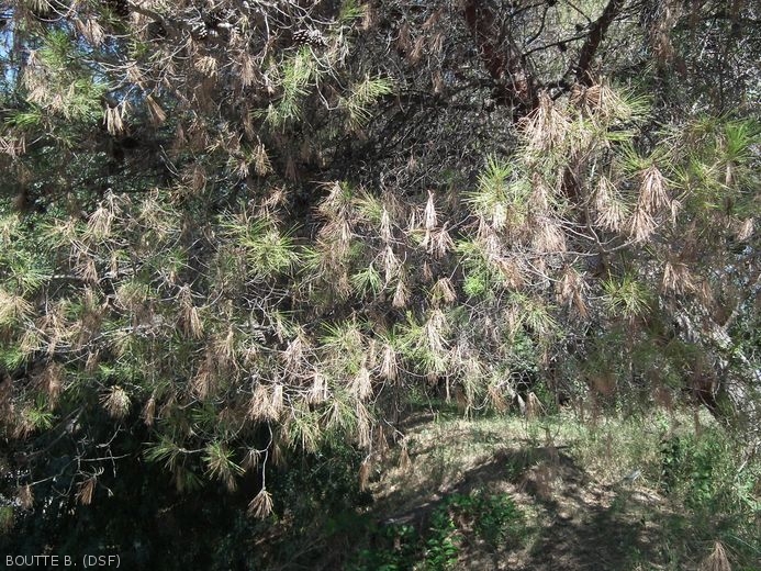 - Le développement de ces chancres entraîne le dessèchement progressif des rameaux affectés dont les aiguilles roussissent par bouquets.