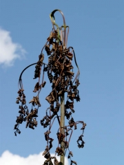 - Sur les jeunes tiges, en zone contaminée, les jeunes tiges (semis ou plants de hauteur inférieure à 2 m) meurent rapidement.
