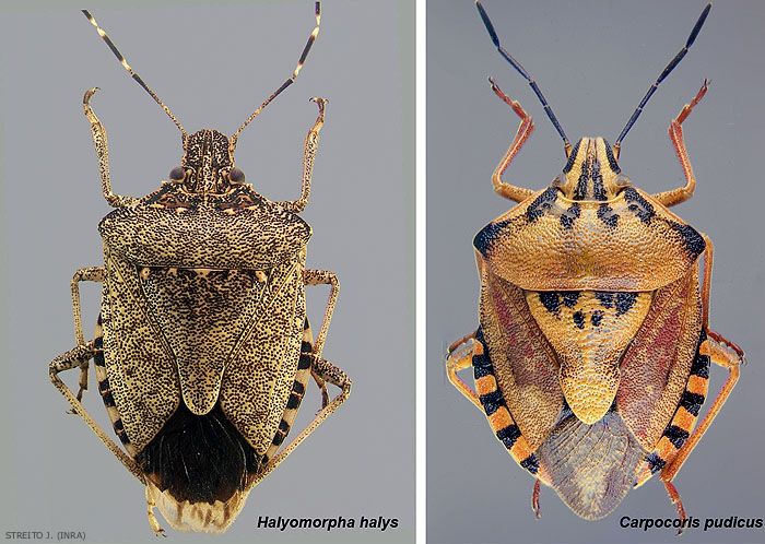 Ce sont des punaises un peu plus petites que la Punaise diabolique en général plus vivement colorées mais la couleur uniformément noire des antennes permet de les distinguer sans ambiguïté de la Punaise diabolique.