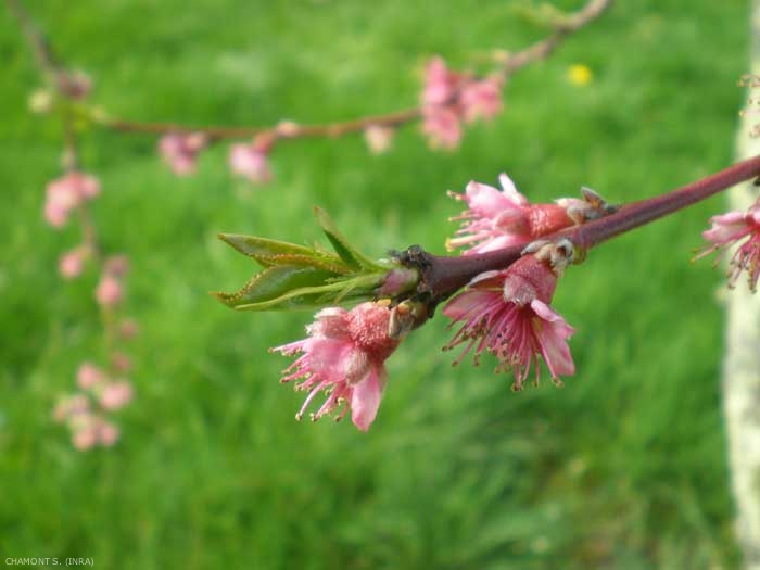 Le pêcher est un arbre fruitier, haut de 2 à 5 m, à fleurs roses et à floraison précoce, dont la culture est concentrée surtout dans les régions méridionales de notre territoire à cause de la sensibilité au gel de sa floraison précoce.