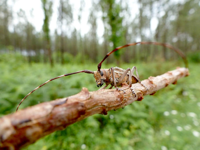 Lors de la ponte, les Monochamus creusent des encoches transversales dans l’écorce. En retirant l’écorce, on peut observer les larves qui creusent leurs galeries de nutrition dans l’aubier. Des orifices arrondis avec ou sans écorce marquent la sortie des insectes.