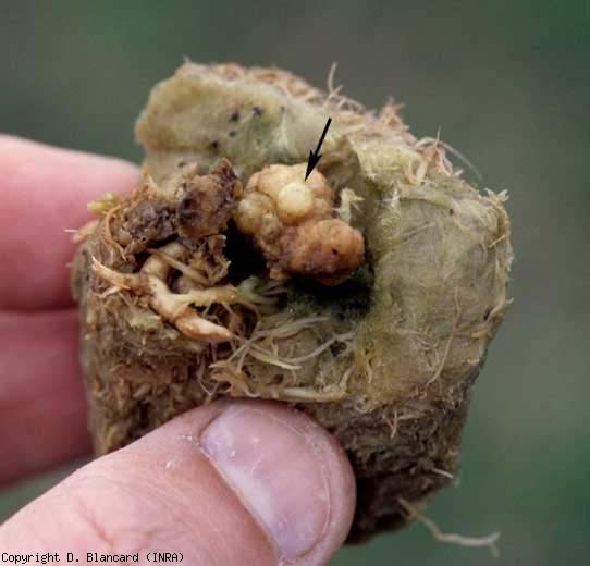 Un flétrissement foliaire (accompagné ou non d'un jaunissement), un dessèchement, voire un blocage du développement de la végétation doivent vous inciter à inspecter attentivement le collet.