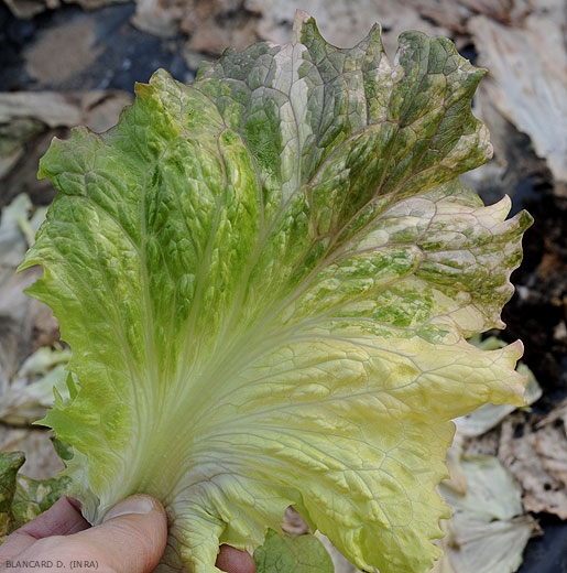 - Causes possibles : maladie génétique (chimère) (figure 1 à 4), phytotoxicité liée aux effets d’un herbicide agissant sur la synthèse chlorophyllienne (figure 5 à 8), plus rarement viroses (figures 9 et 10), etc.