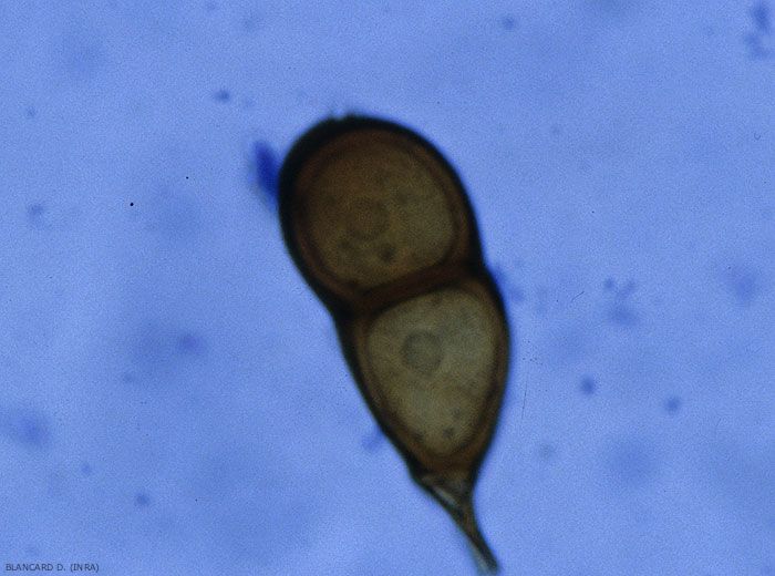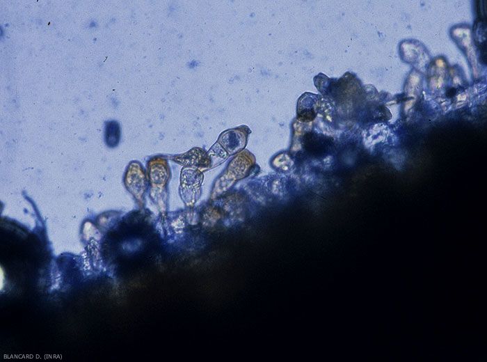 - Conseils : au laboratoire, la reconnaissance au microscope photonique de ces spores très caractéristiques ne pose normalement pas de problème, surtout si elles sont associées à des sores.