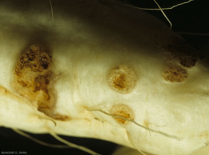 - Dissémination : par l’eau lors de pluies ou d’irrigations par aspersion, à la suite de projections ou d’éclaboussures, par lessivage, par ruissellement sur et dans le sol. Les semences contaminées, les ouvriers et leurs outils au cours des opérations culturales, certains animaux et insectes assurent aussi leur dispersion.