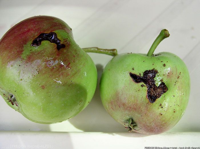 Les dégâts de perforation sur fruits peuvent rappeler ceux du carpocapse du pommier. Cependant, ces dégâts sont observés plus tôt en saison.