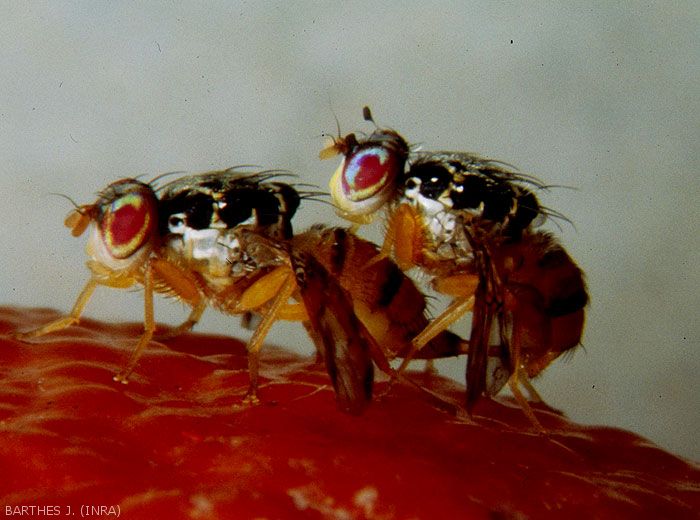 Les variétés à récolte tardive, la proximité des décharges publiques, les maturités échelonnées de variétés et d’espèces fruitières facilitent la succession des générations.