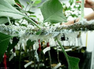 Les fortes attaques font péricliter les arbres (figures 5 à 8). Il n’y a pas de dégâts sur feuilles.