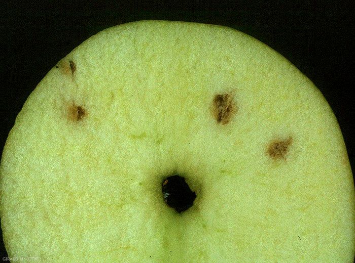 Tous ces symptômes peuvent apparaître dès au verger mais peuvent aussi se développer en conservation.