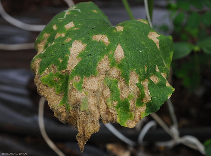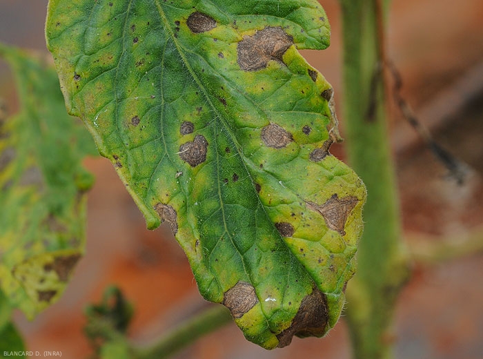 - Causes possibles : diverses maladies fongiques en fin d''évolution (alternarioses - figure 1 ; corynesporioses - figures 2 et 3 ; cercosporioses - figures 4 à 7 ; Botrytis cinerea - figures 8 et 9 ; etc.).