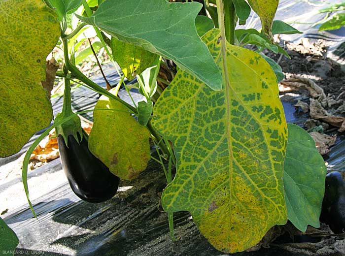 - flétrissement, jaunissement, voire nécrose des folioles et des feuilles basses (figures 4 à 6) ;