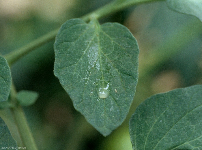 Description : fluides végétaux hébergeant de nombreuses cellules bactériennes en masse leur conférant une consistance plus ou moins visqueuse. Ils prennent la forme de gouttelettes plus ou moins laiteuses perlant de certains tissus végétaux contaminés (figures 1 et 2).