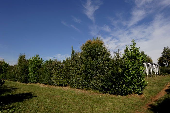 Les haies, dont les fonctions dans l’espace agricole sont multiples, sont souvent implantées en tant que brise-vent en bordure de verger (cf. Figures 1, 2, 3 et 4). Elles constituent également un « réservoir » de plantes, un refuge, un habitat, un site d’hivernation (ex : feuilles persistantes, tiges entrelacées), des ressources (pollen, nectar, baies, proies) pour les auxiliaires (insectes et oiseaux), un filtre, une barrière (ex : contre les Lépidoptères) et/ou un corridor (pour certaines espèces de carabes, oiseaux, mammifères, reptiles…).