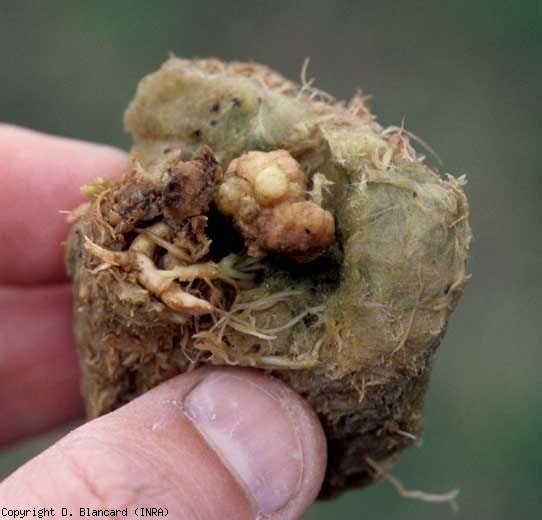 - Apparition de petites grosseurs réparties sur l'ensemble du système racinaire où localisées au collet ;
