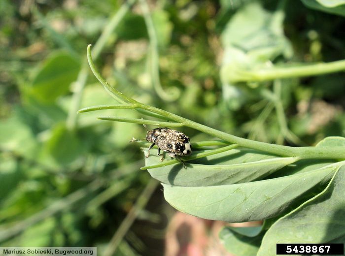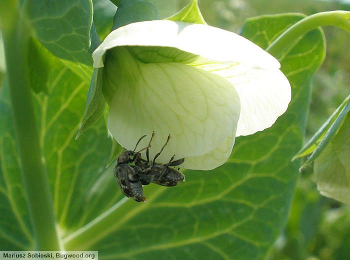 Les bruches sont des coléoptères retrouvés sur les Fabacées. Bruchus pisorum est spécifique du pois, Bruchus rufimanus de la fève, Bruchus affinis de plusieurs Lathyrus, Bruchus atomarius de plusieurs Vicia et Lathyrus.