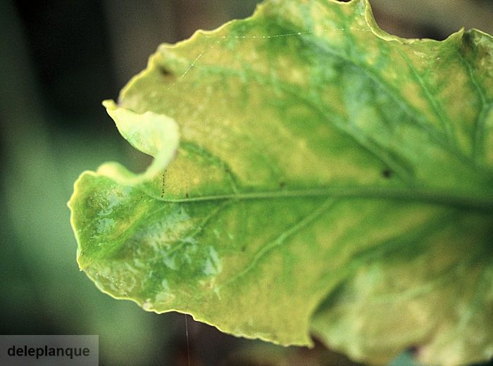 Apparition de jaunisses virales le plus souvent sur les feuilles les plus anciennes.