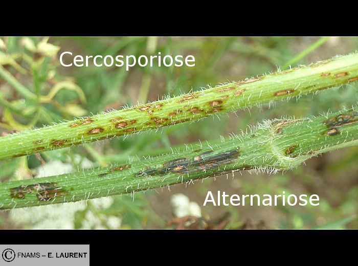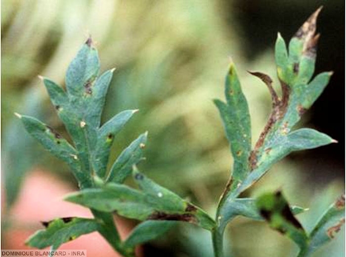 Risque de confusion avec la Cercosporiose, Xanthomonas hortorum pv. carotae ou des désordres physiologiques.