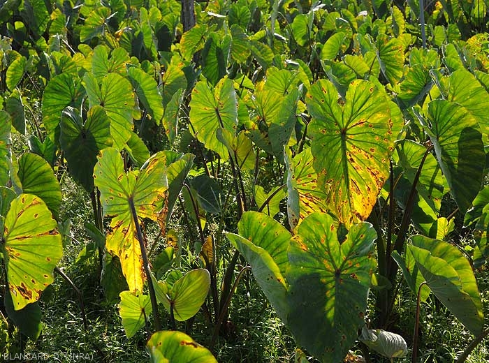 Nécrose et dessèchement des feuilles en cas de fortes attaques (figure 6)