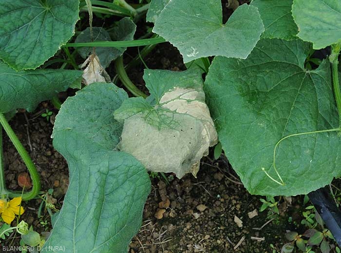 - Signes : feutrage mycélien cotonneux blanc et aérien recouvrant plus ou moins les lésions en conditions humides. Des sporanges, des oospores, des chlamydospores peuvent être observées grâce à une microscope photonique dans les tissus dégradés.