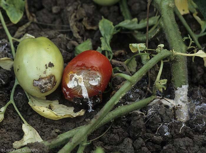 Symptômes de Sclerotium rolfsii sur Solanacées