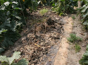 Jaunissements et flétrissements foliaires,effondrement des plantes qui finissent par mourir (figures 2 et 3).