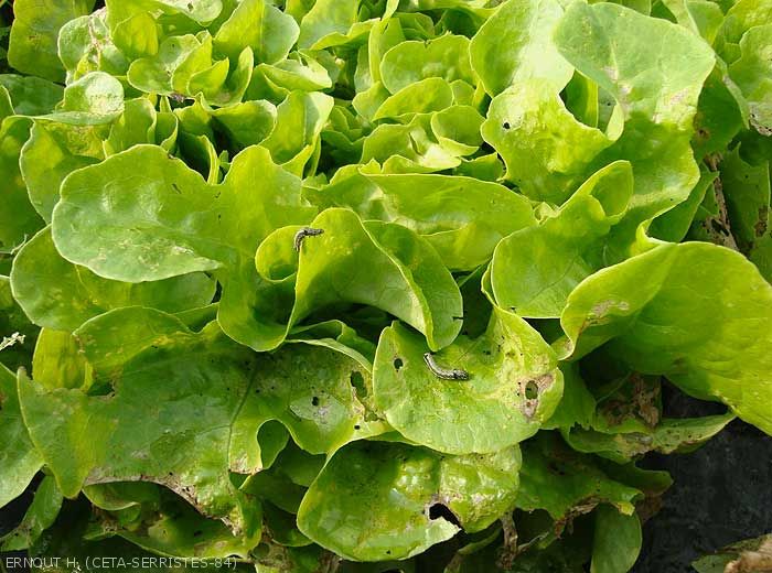 - Chenilles quasiment toutes phytophages ; certaines sont terricoles ("vers gris"). Elles sont plus ou moins polyphages et dommageables pour les organes aériens et telluriques des légumes.