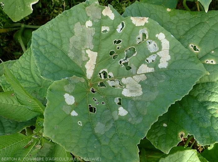 Les tissus foliaires finissent soit par se nécroser, se décomposer, et tomber. Le limbe prend alors un aspect criblé (figure 3), parfois seules les grosses nervures subsistant par endroits.