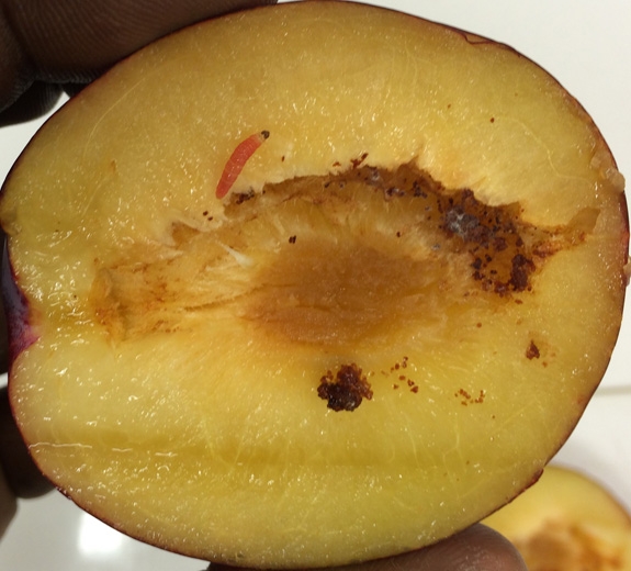La Tordeuse Orientale du Pêcher (Cydia molesta) fait partie du groupe des chenilles foreuses des fruits que l'on peut rencontrer en verger de prunier.