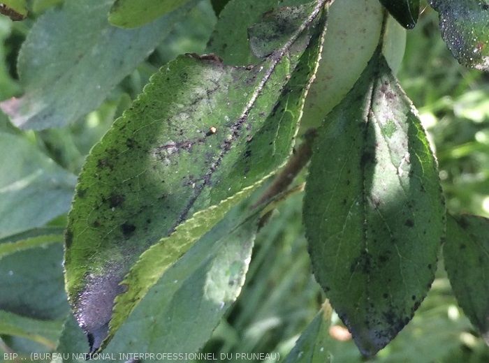 - et indirects avec l’apparition de fumagine (champignon saprophyte de couleur noir) qui se développe sur le miellat qu’ils produisent.