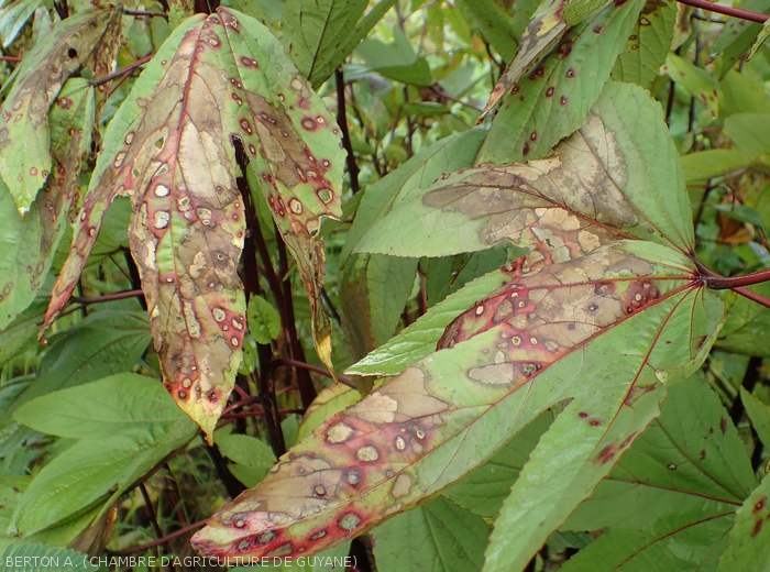 Sur les malavacées en Guyane, le rhizoctone foliaire est uniquement répertorié sur oseille de Guinées (Hibiscus sabdariffa)