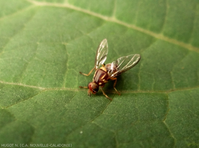 - Confusions possibles : Cette mouche des fruits pourrait être confondue avec Bactrocera dorsalis qui est pour le moment absente de Nouvelle-Calédonie.
