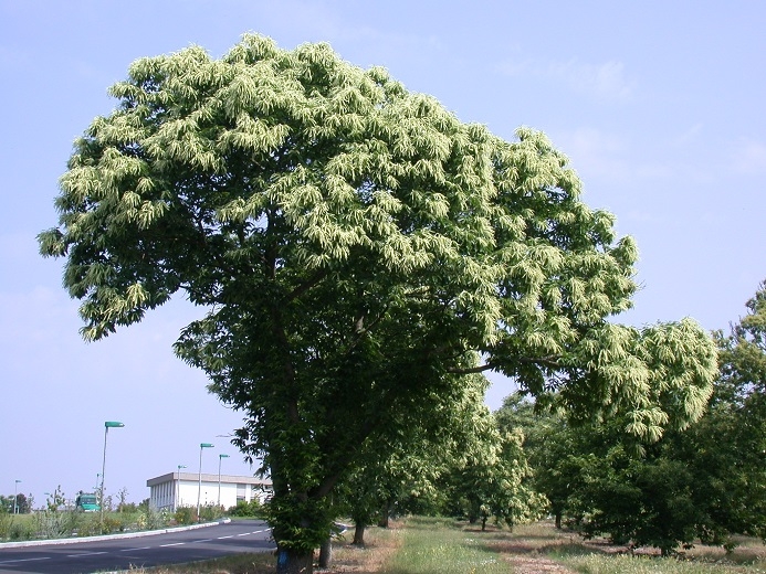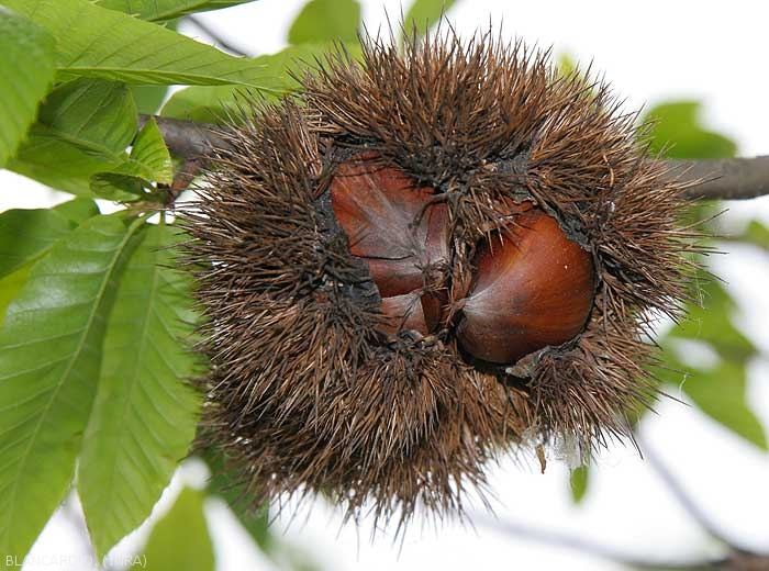 Le châtaignier européen (Castanea sativa, Figure 1) appartient à la famille des fagacées, comme le chêne (Quercus spp.) et le hêtre (Fagus spp.). Castanea est l'ancien nom du chêne et sativa signifie "cultivé".