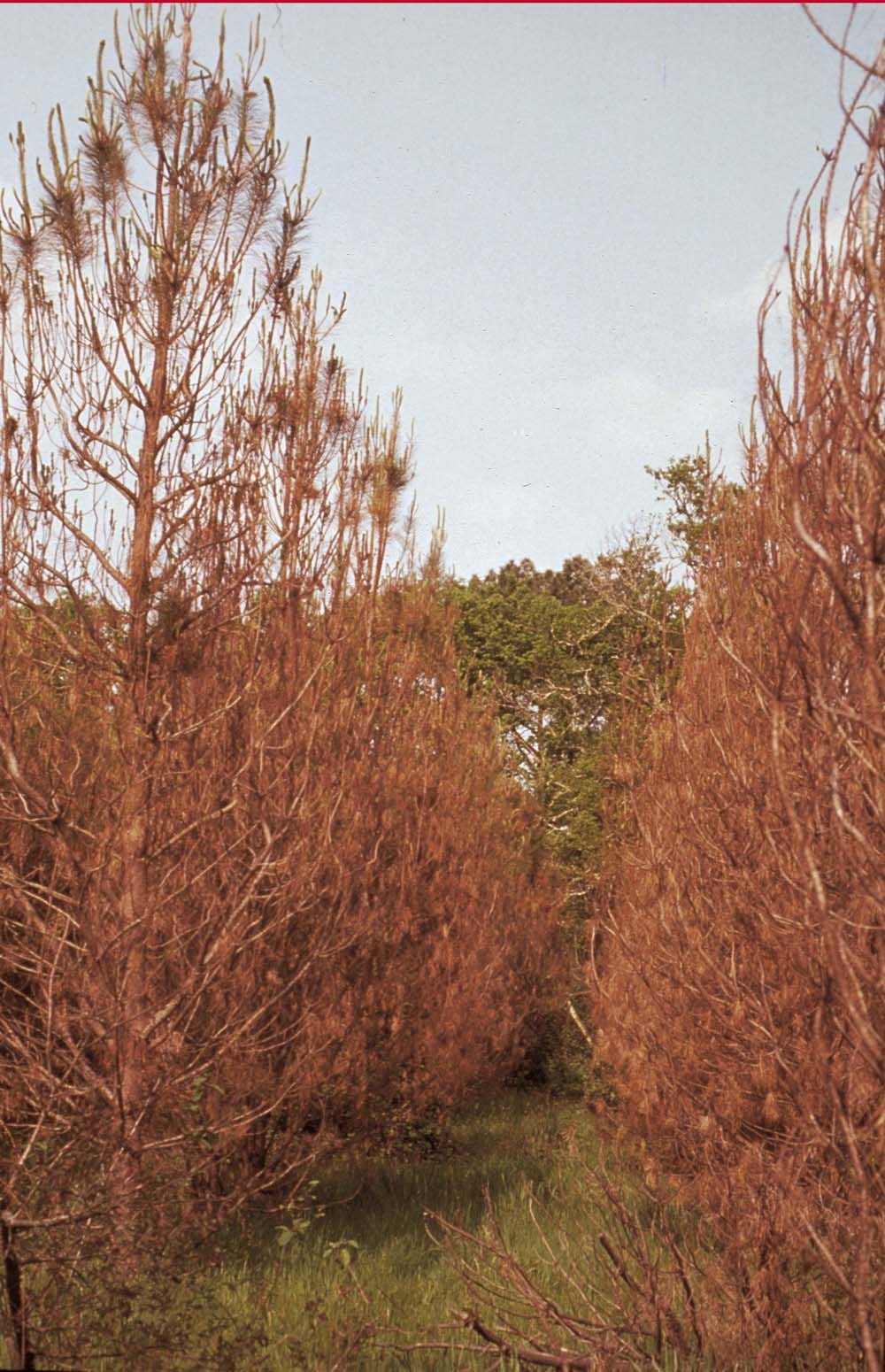 En cas de fort impact dû à l’infection, toutes les générations d’aiguilles peuvent être attaquées, ce qui entraine le dépérissement de certaines branches ou de jeunes pins.