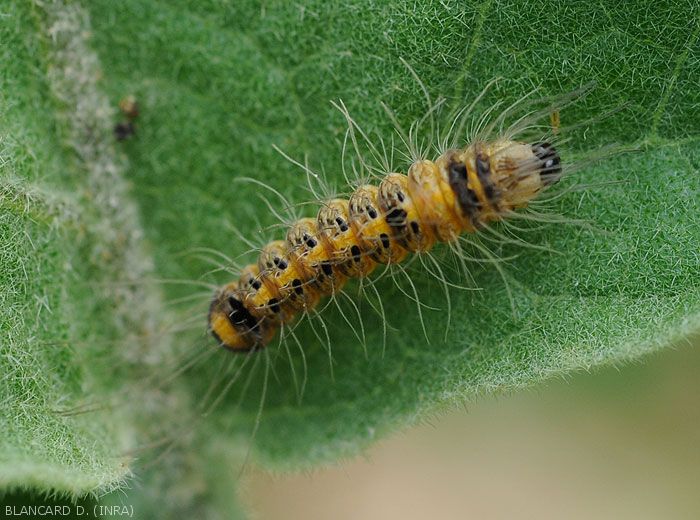 - Dispersion : Les chenilles sont mobiles et se déplacent aisément d'une feuille à l'autre comme les adultes qui le font plus aisément.