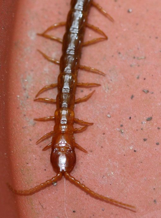 Myriapodes (mille-pattes) au corps aplati, long et segmenté, nombreuses pattes qui sont plus ou moins longues selon les espèces, une seule paire de patte par segment (ce qui les différencie des diplopodes), le premier segment n’a pas de pattes mais une paire de crochets venimeux (forcipules), 2 dernières paires de pattes plus longues que les autres, 2 antennes plus ou moins longues selon les espèces. Les géophiles et scolopendres ont des pattes plus courtes et un corps plus fin et allongé que les lithobies.